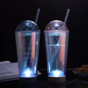 Luminous Creative Coffee Cup Plastic Cup Light Gradient Portable Student Double Straw Water Cup