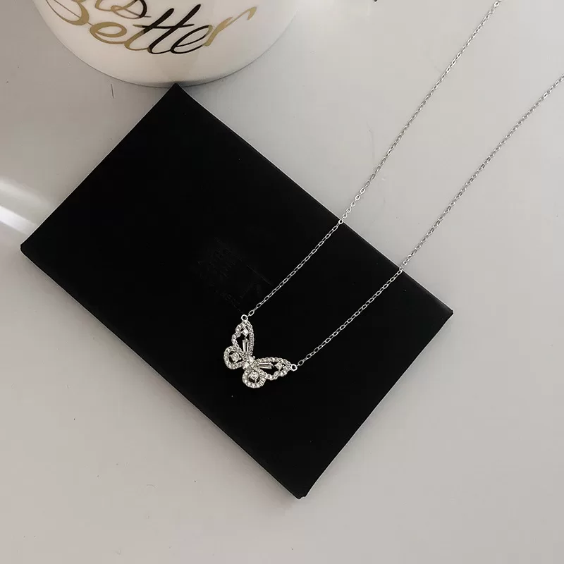Japan and South Korea necklaces Mori style smart hollow butterfly pendant female micro-inlaid zircon fashion design clavicle chain wholesale
